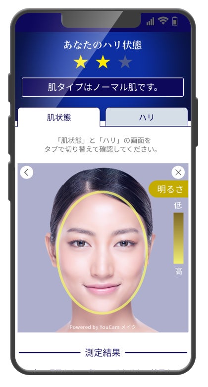 今回、従来の測定項目に「明るさ」を追加し、より詳細な肌分析が可能になりました。肌の全体的な透明感と明るさの状態をAIによって解析することで、「明るさ」を判定します。