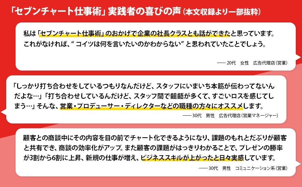 この手法をあらゆるビジネスで「仕事術」として活用されている方々から、喜びの声が集まっています。