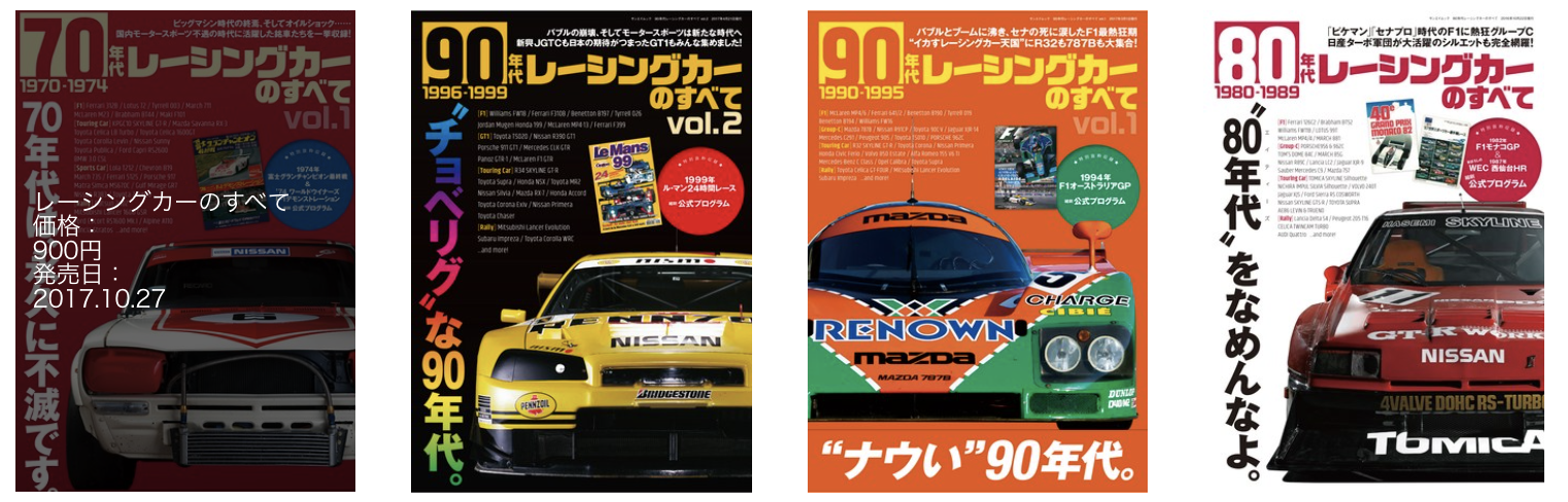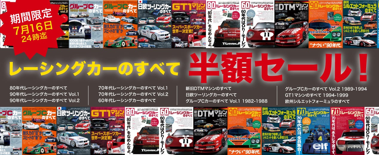 往年のレーシングカーを年代とテーマで振り返る『レーシングカーのすべて』シリーズ(電子書籍)の半額セールを実施中