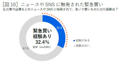 ・災害や品薄などのニュースやSNSに触発されて、急いで買いものに出た「経験がある」32.4%