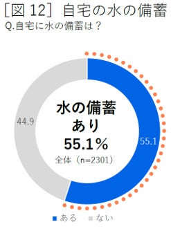 ◆自宅での「水」の備蓄率55.1%と半数近い人が備蓄できていない