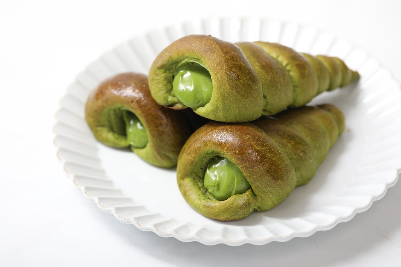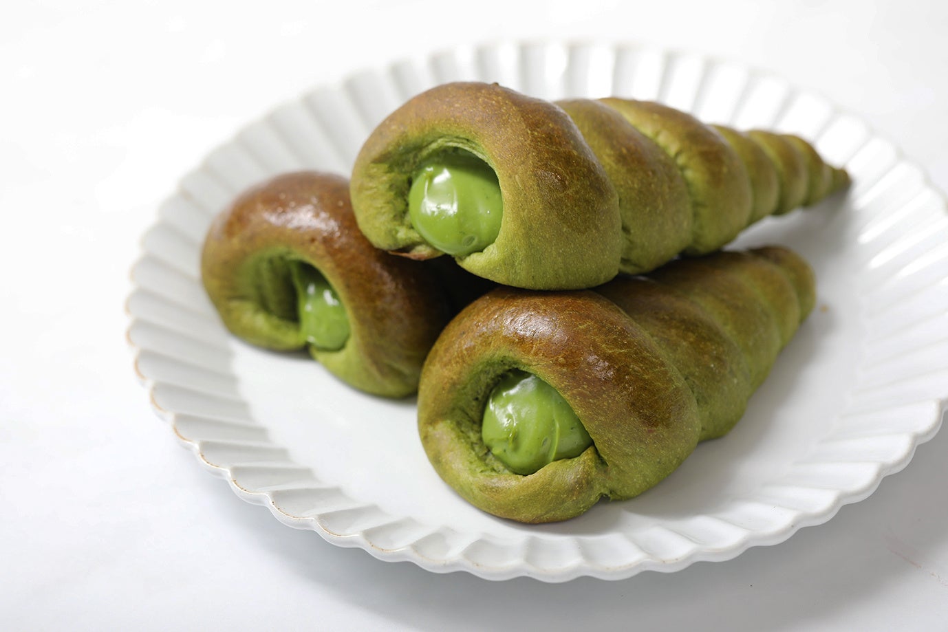 抹茶の風味がふんわり広がる季節限定のコルネ。抹茶風味の菓子生地に、カスタードクリームと抹茶をミックスして仕上げたなめらかな口当たりのクリームを詰めました。朝食にもおやつ代わりにもおすすめです。・販売価格:1個;290円(税込)