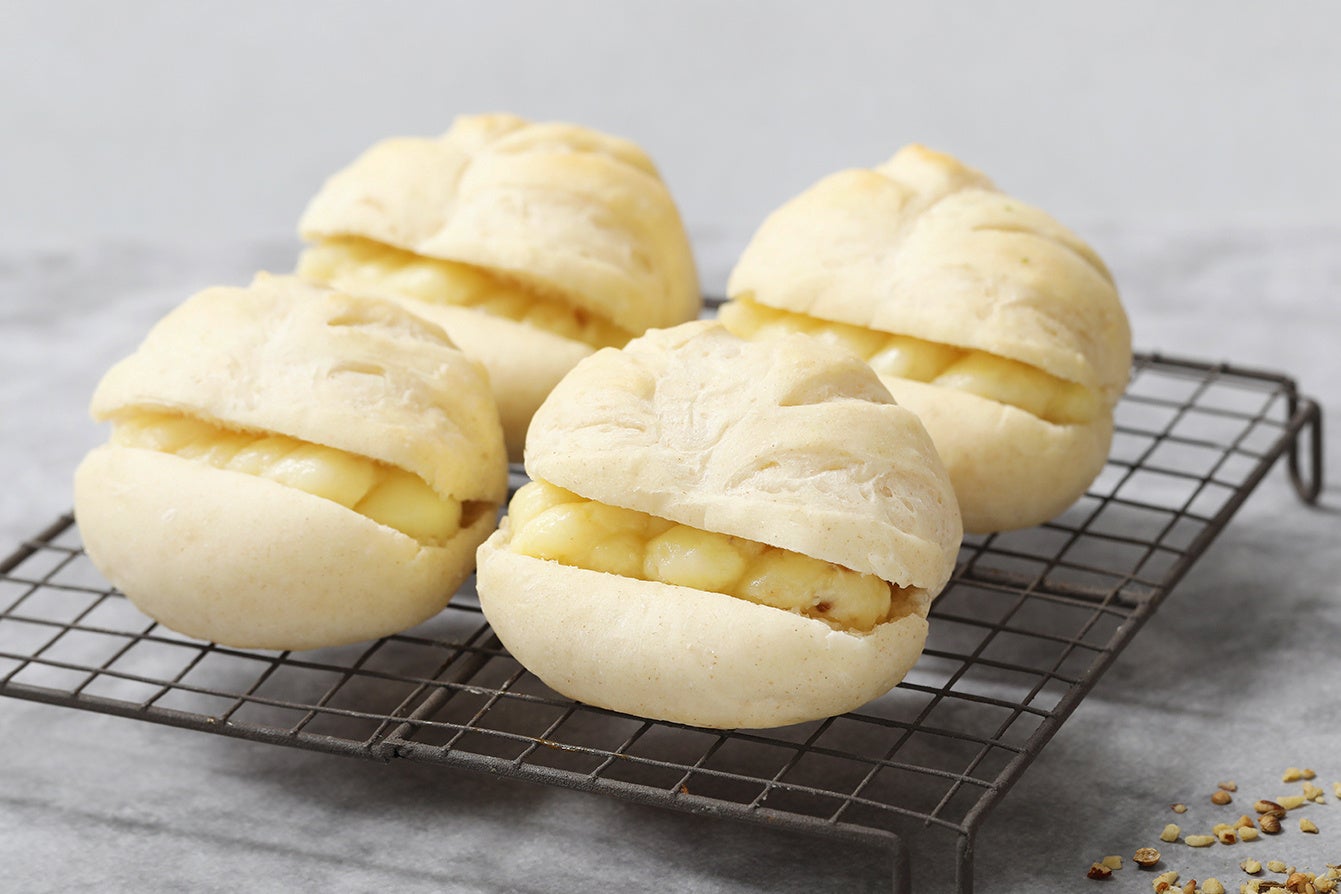 ローストしたナッツに、スパイスや胡麻、塩をブレンドした中東発祥のミックススパイス「デュカ」を使用した風味豊かな一品。練乳クリームのコクのある甘みと、デュカのエスニックな香りが奏でるメリハリのある味わい。バゲットラビットが贈るこだわりのクリームパンです。
