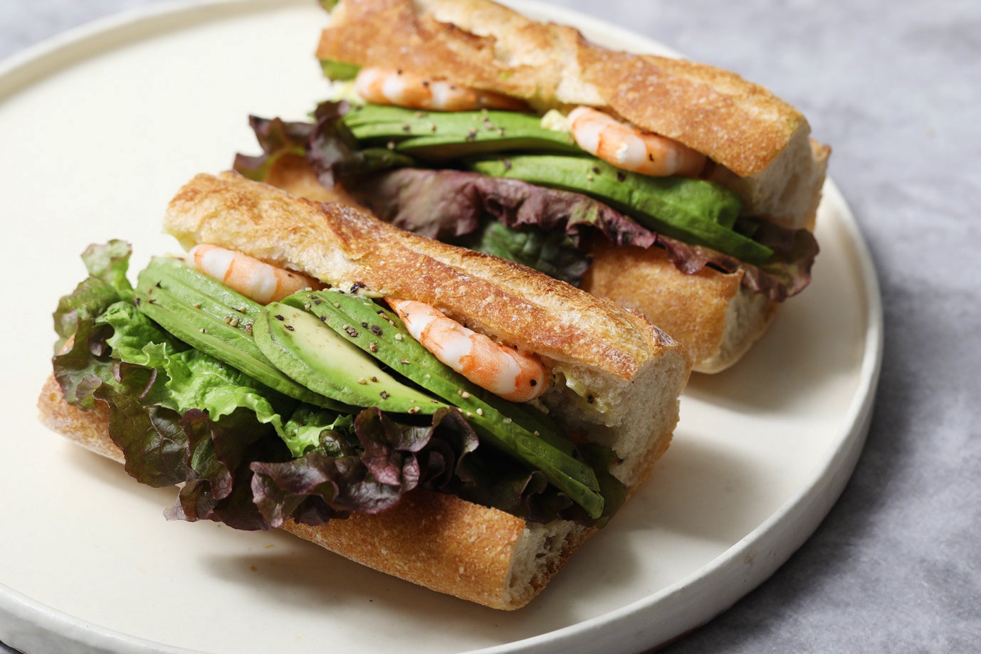 オリジナルのオニオンドレッシングで仕上げた、暑くなる季節にもさっぱり食べられるサンドです。女性に人気があるエビとアボカドを組み合わせ、初夏にぴったりなサンドに仕上げました。ピクニックや行楽にもおすすめです。