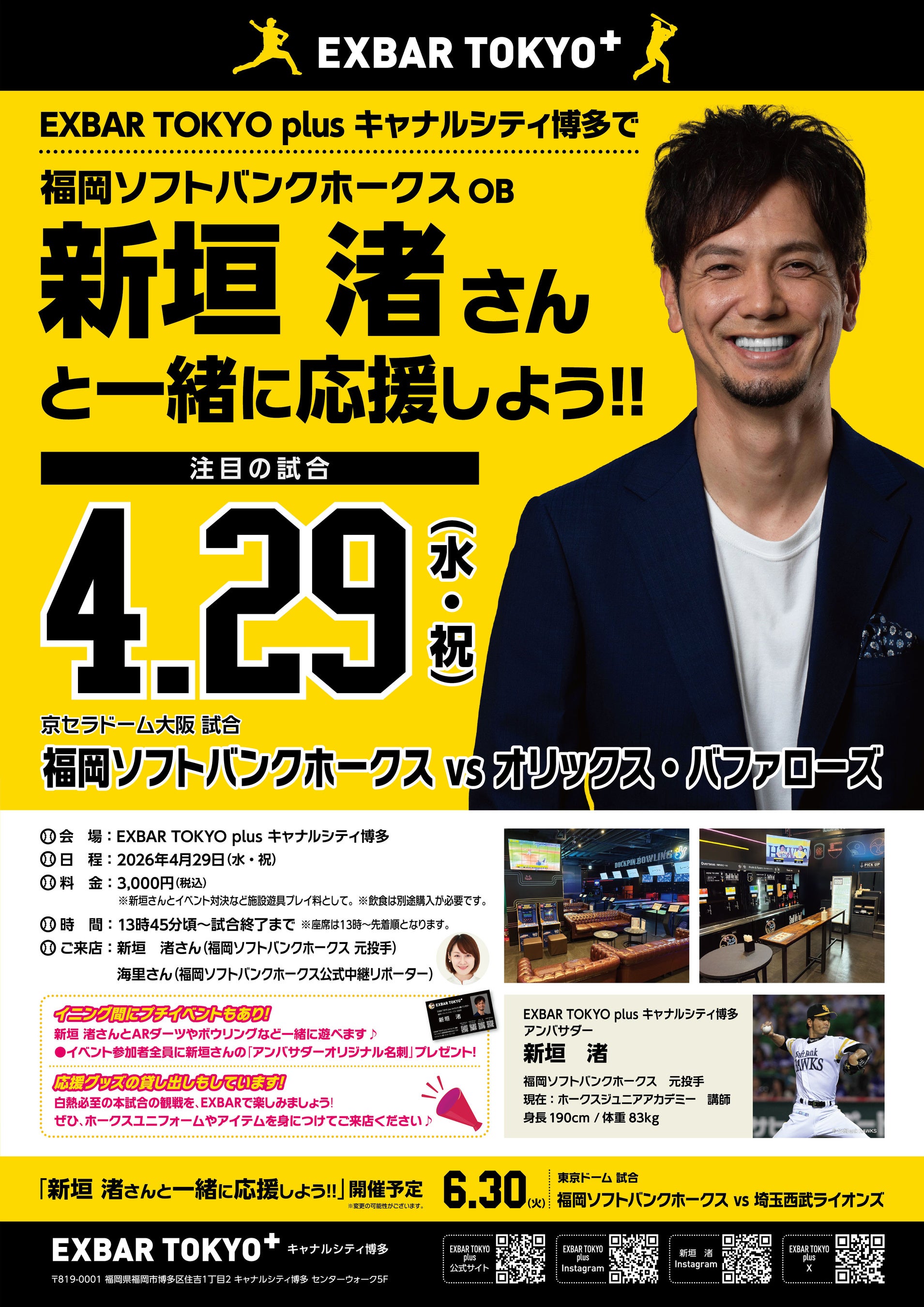 EXBAR TOKYO plus キャナルシティ博多で福岡ソフトバンクホークスOB新垣渚さんと一緒に応援しよう!