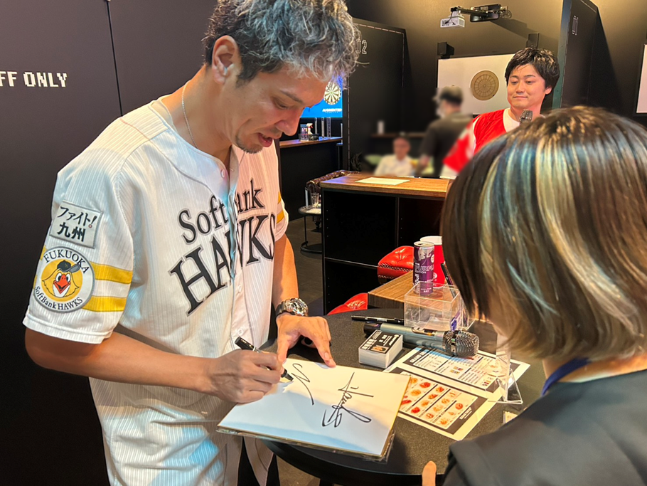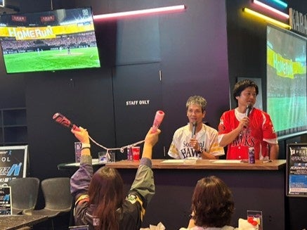 当店アンバサダーを務める新垣渚さんと福岡ソフトバンクホークス公式中継リポーター海里さんが来店の上、お2人のトークや店内のダーツやボウリングを一緒に楽しめるなど、直接交流型のイベントです。