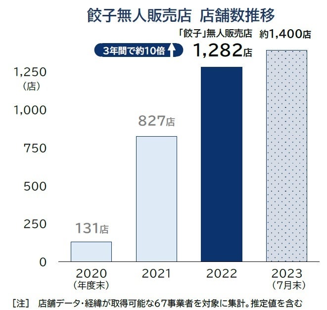 餃子の無人販売、コロナで大幅増 22年度末に1300店、3年で10倍に急拡大