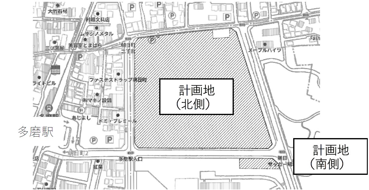 計画地は、西武鉄道多摩川線「多磨」駅至近で、北側に東京都道14号新宿国立線(東八道路)、南側に国道20号線(甲州街道)があり、交通利便性の高い立地となっています。