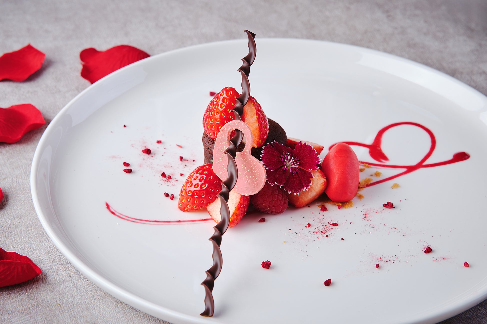 ファインダイニング ラ・プロヴァンスでは、本格プロヴァンス料理のコースの最後にデザートとして旬のいちごとほんのりビターなチョコレートのマリアージュが楽しめる「LOVEストロベリー&ショコラアフタヌーンティー」のスイーツをお届け。ラグジュアリーな空間で優雅なひとときをお楽しみいただけます。