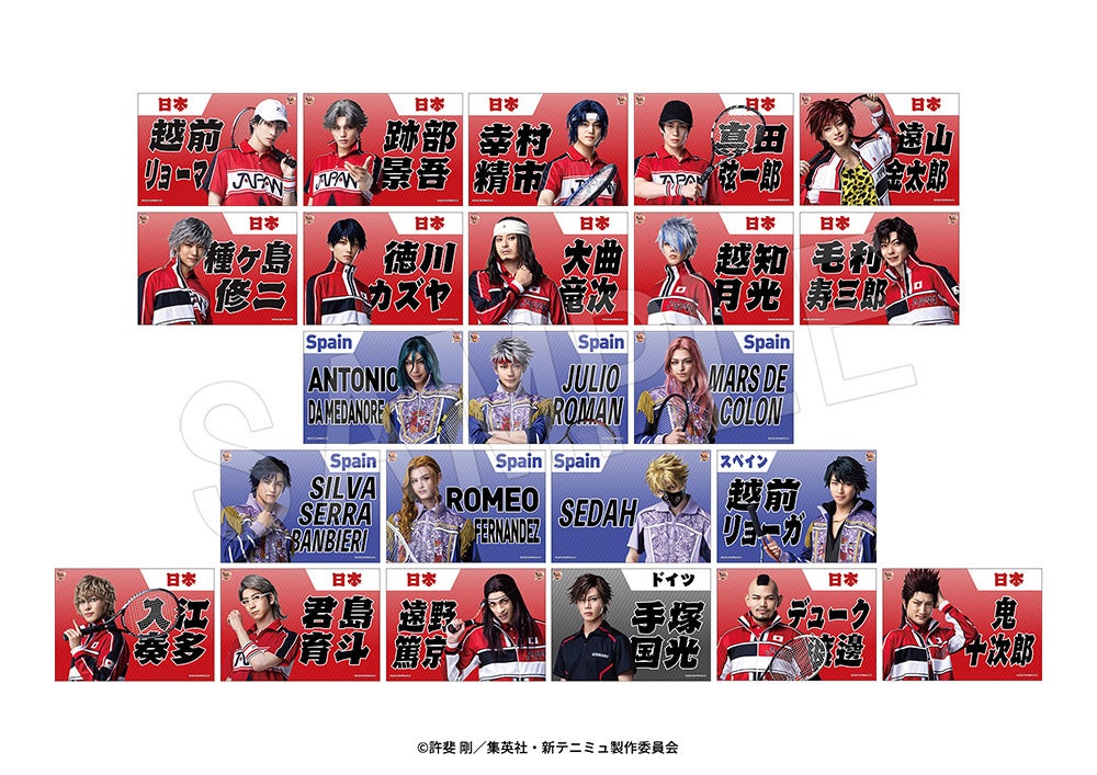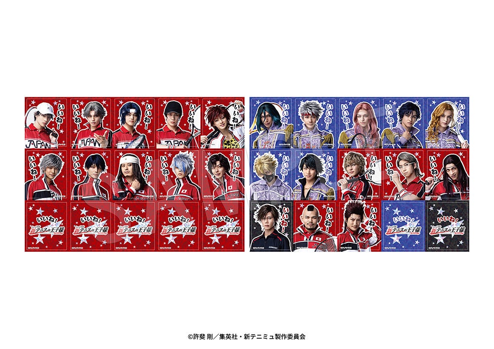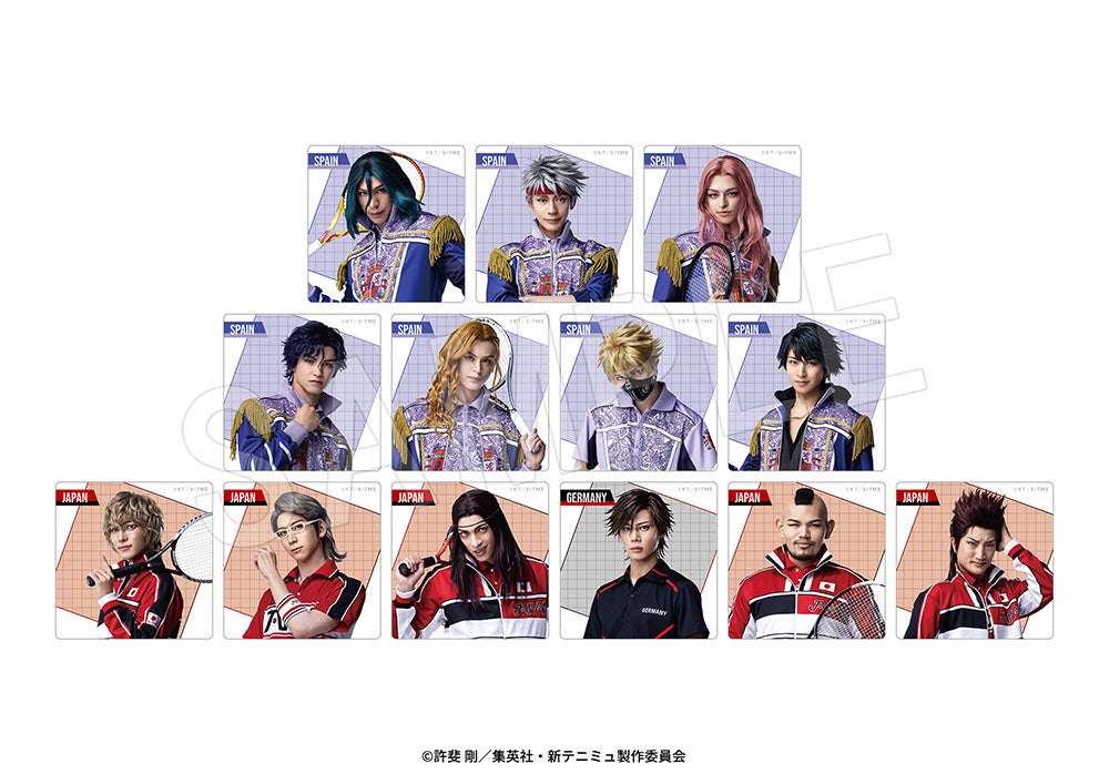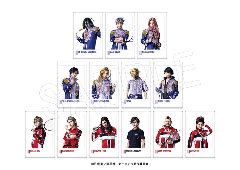 ラインナップ:越前リョーマ、跡部景吾、幸村精市、真田弦一郎、遠山金太郎、種ヶ島修二、徳川カズヤ、大曲竜次、越知月光、毛利寿三郎、アントニオ・ダ・メダノレ、フリオ・ロマン、マルス・デ・コロン、シルバ・セラ・バンビエーリ、ロミオ・フェルナンデス、セダ、越前リョーガ、デューク渡邊、鬼 十次郎、君島育斗、遠野篤京、入江奏多、手塚国光(全23種)