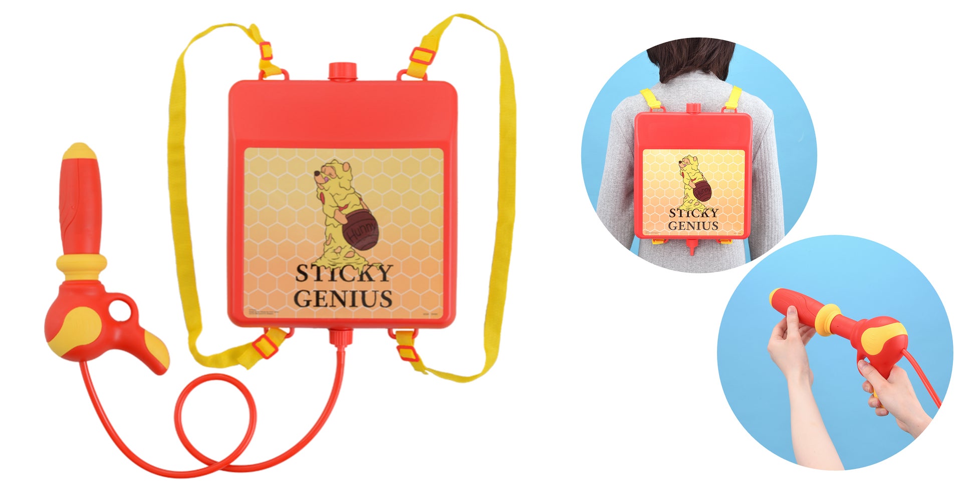 はちみつを被った「プー」のイラストが描かれた水鉄砲リュック。