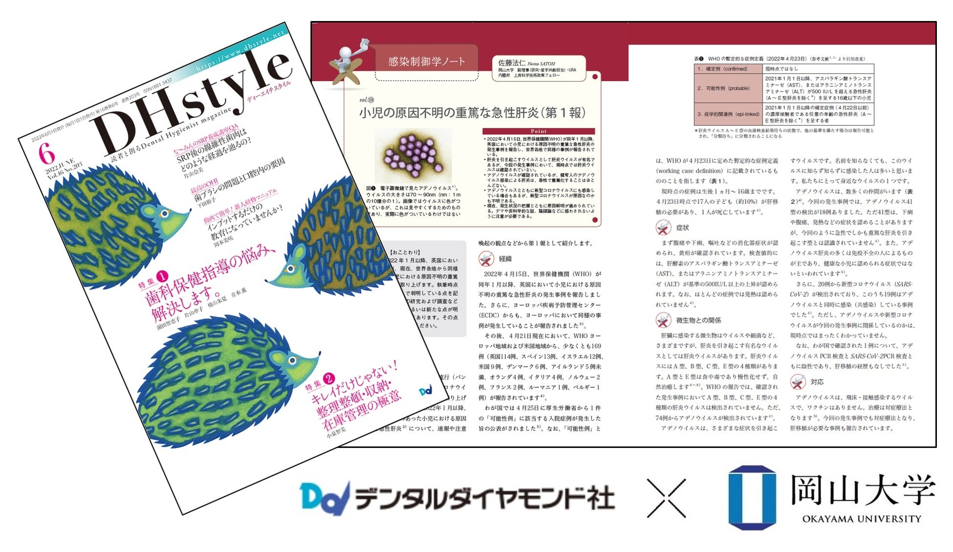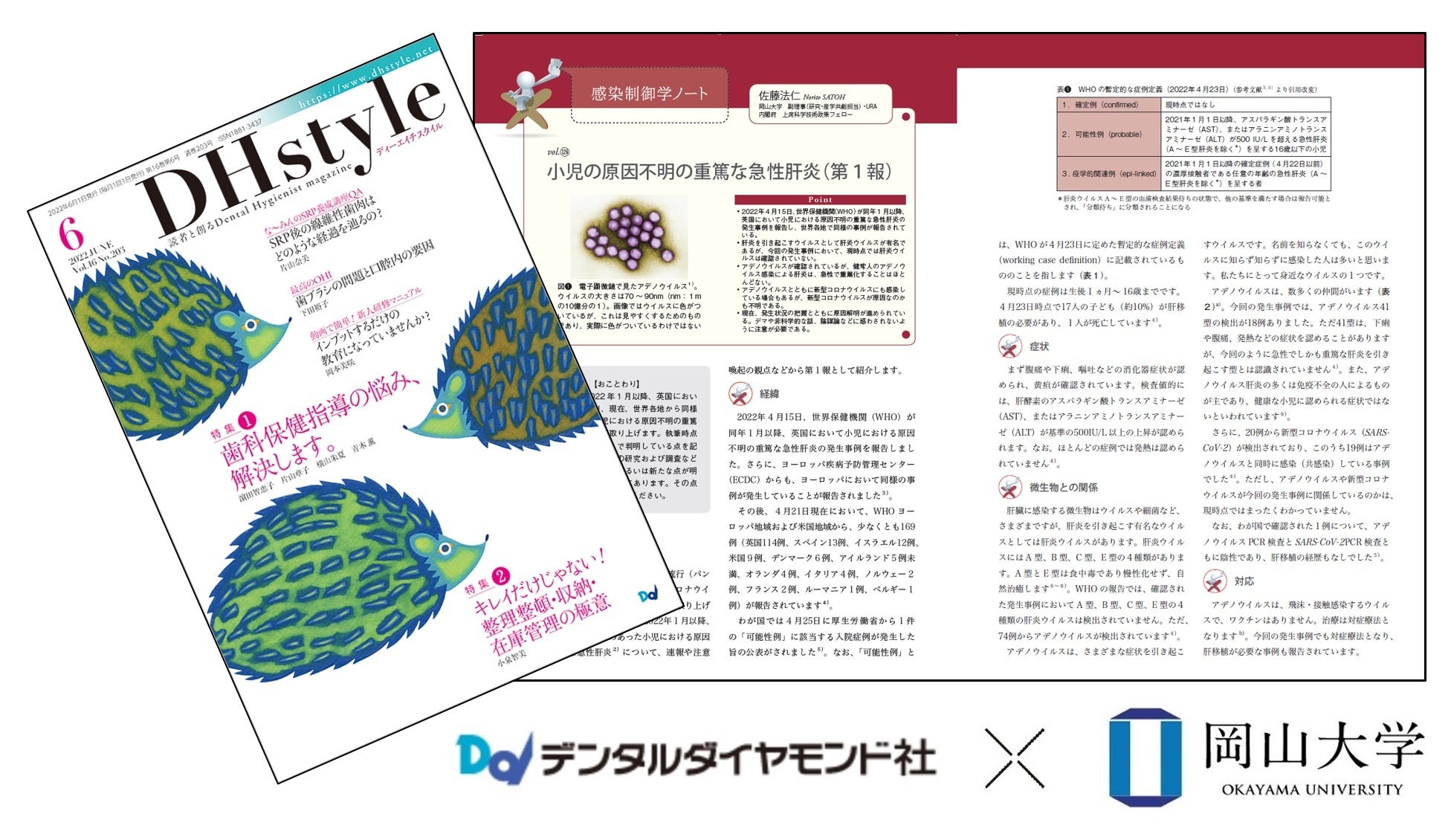 歯科総合出版社デンタルダイヤモンド社が発行している歯科衛生士向け月刊誌『DHstyle』に連載中の「感染制御学ノート」の最新号「小児の原因不明の重篤な急性肝炎(第1報)」を期間限定で一般公開中です!