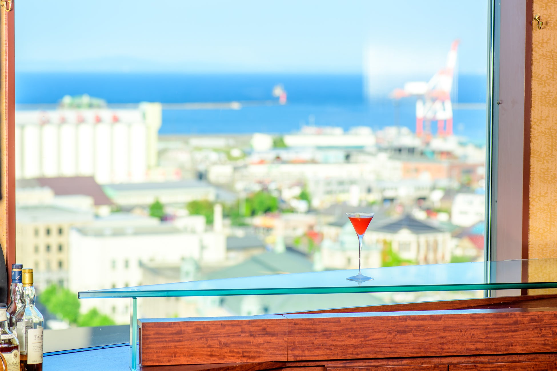 最上階から小樽を眺めるトップバー。小樽港や小樽日銀通りを一望でき、船の入港など、港町だからこそのダイナミックな風景をお楽しみください。