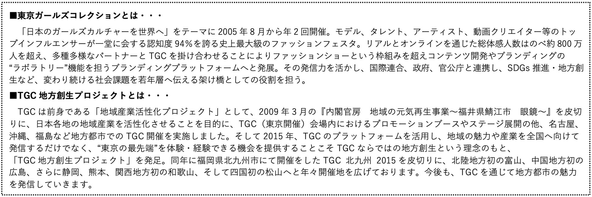 【 CREATEs presents TGC KITAKYUSHU 2024 by TOKYO GIRLS COLLECTION 開催概要 】 |