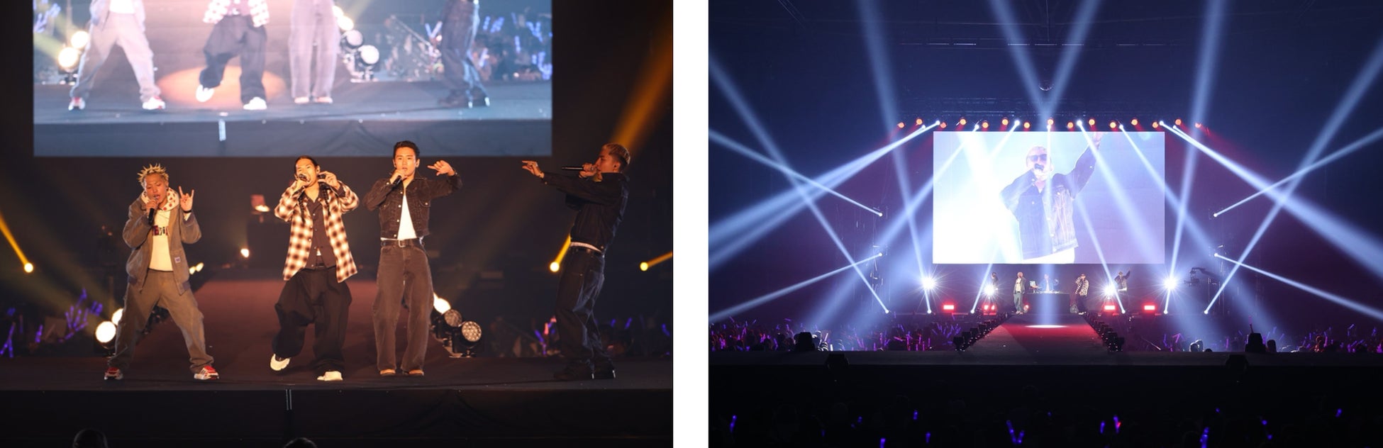 さらに、MC SAM、MAXI、YUTA、MATHEUS、およびDJ OTAの5人からなるオルタナティブヒップホップユニットで、2023年5月より本格的な音楽活動をスタート。メンバーそれぞれがモデルとしてファッションの分野でも活躍するなどマルチなスキルを兼ね備えるKOMOREBIが登場し、失恋の感情を爽やかに歌った疾走感あふれる「LOVE ME KILL ME」を歌い上げると、2曲目には、リリースからわずか3ヶ月でTikTokでの再生回数は20億回、同楽曲を使用したTikTokでの投稿数は10万本を突破するなどSNSを中心に話題を呼んだ「Giri Giri」を披露!印象的なフレーズ「ギリハッピー」を全員が口ずさみ、会場が一体となって盛り上がりました。