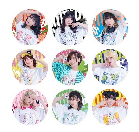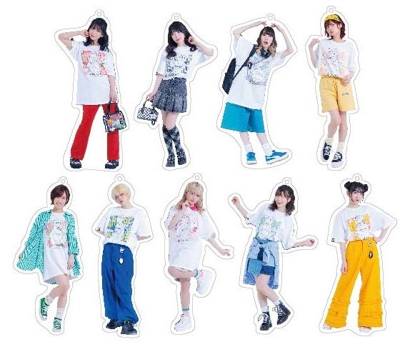 新体制第2弾のコラボレーションのメインは「Tシャツ」。前回のコラボレーションのロングTシャツを着用したメンバーをイラストレーター「DIM」に描き起こししてもらい、普段使いしやすいストリートなデザインに落とし込んだ。Tシャツの他にも「DIM」がデザインしたロゴを使った小物セットや、今回のコラボレーションアイテムを着用したホログラム缶バッジ、アクリルキーホルダーも販売予定だ。