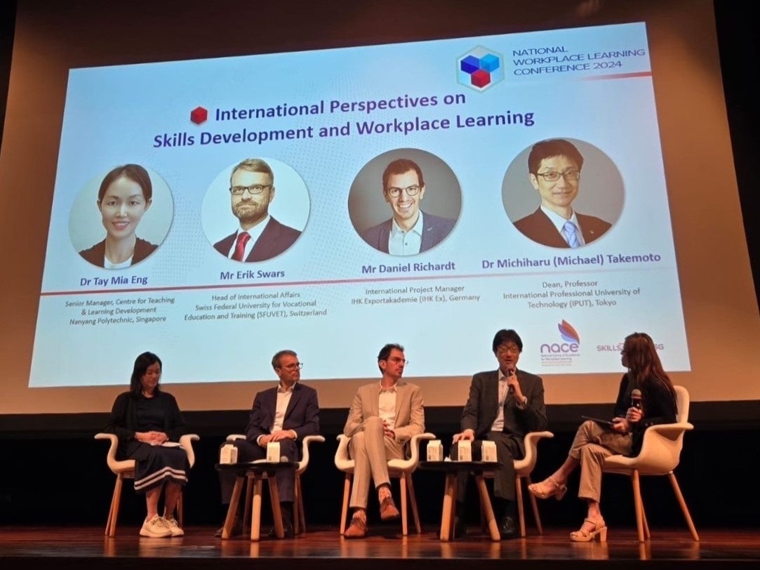 2024年11月、本学の武本充治学部長がシンガポールからの招へいを受けて国際会議に参加。あらゆる職場を学びの場とすることを目指し、NYPの主導で設立されたNACE(企業内実習のための国立機関)が今回の国際会議を開催しました。武本学部長は、本学の強みである「産業界と連携した実践教育」について実例をもとにプレゼンを行い、スキル開発や企業インターンシップに関するトピックなどの事例を紹介し、スピーカーと議論を交わしました。同日にはシンガポールの教育国務大臣であるガン・シアウ・ホアン氏が出席し、本アライアンスの設立を記念する式典が開催されました。
