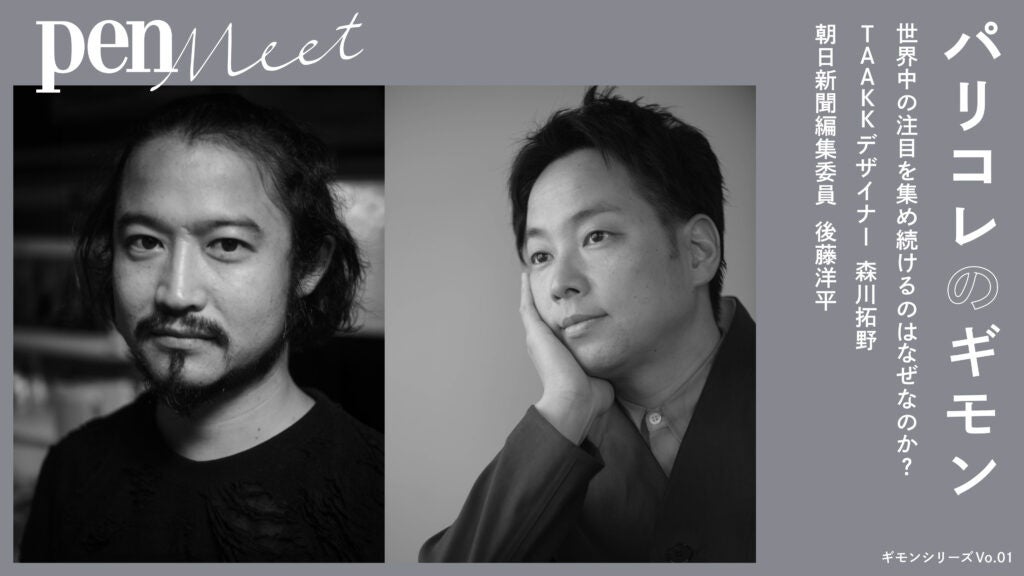ご出演いただくのは、2020年からパリコレに参加するブランド、「TAAKK」デザイナーの森川拓野さん、パリコレをはじめ数々のコレクションを取材してきた朝日新聞編集委員の後藤洋平さんです。司会進行はPen編集長の石川康太が務めます。