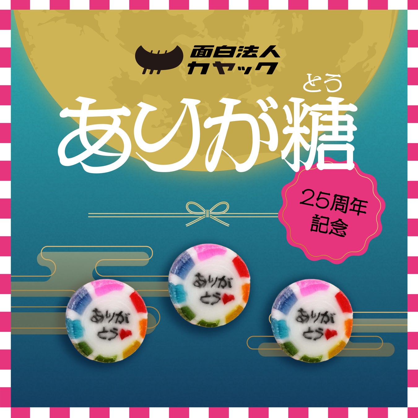 有料観覧席 全1000席の来場者の皆様に、25周年の感謝を伝える飴「ありが糖」を配布します。受け取った皆様が日頃の感謝の気持ちを「ありが糖」に込めて相手に分け渡すことで、「ありがとう」を伝えるきっかけを増やします。