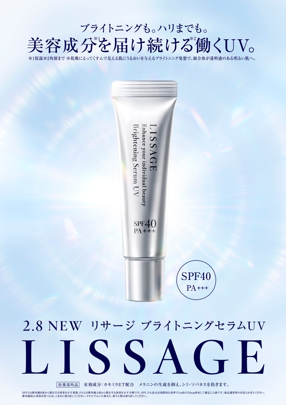肌をうるおすコラーゲン研究を30年以上積み重ね、個肌に寄り添ってきた『LISSAGE(リサージ)』から、美容成分※1を届け続ける※2働くUV「ブライトニングセラムUV」を、2025年2月8日(土)より発売いたします。
