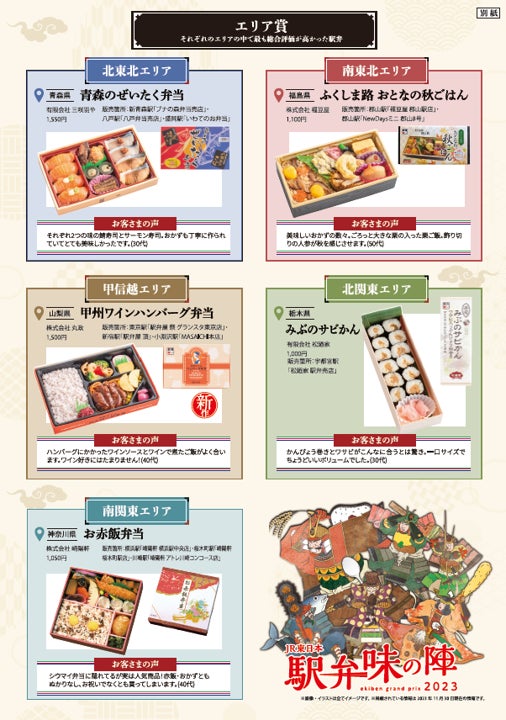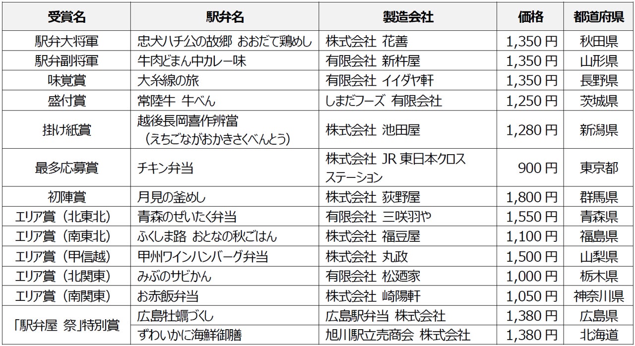 秋の行楽シーズンにあわせ、鉄道の旅には欠かすことができない「駅弁」の魅力を発信するために、東日本各地の駅弁を紹介する「駅弁味の陣」を2012年から開催し、今年で12回目の開催となりました。お客さまの投票によって最も高い支持を得た駅弁が「駅弁大将軍」に選ばれ、投票後、応募すると豪華景品が当たるキャンペーンも実施しました。