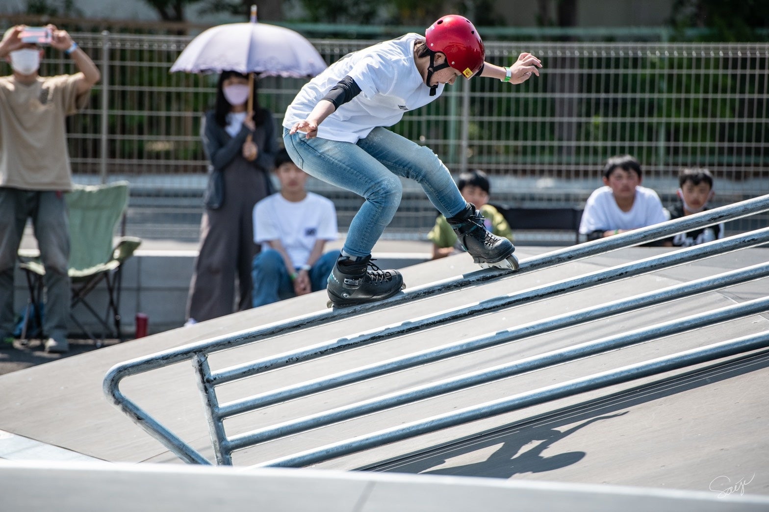 東千尋選手が実施しているアグレッシブインラインスケートは、インラインスケートの一種で、スケートボーディングやBMXのようなトリックやアクロバティックな動きを行うために設計されたスケートスポーツです。アグレッシブインラインスケートは、都市環境やスケートパークで行われ、様々な技術的なトリックやジャンプを含むスケートの要素を取り入れています。