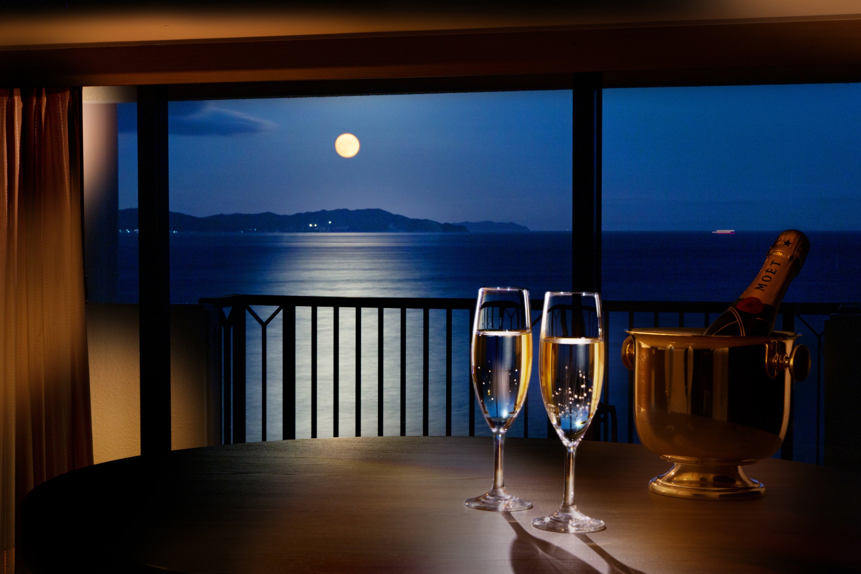 月の光が海に描くムーンロードと海に昇る朝日を臨むリゾートホテルで、今年最も地球から近い満月、且つ、ひと月の間に現れる2回目の満月、レアな「ブルームーン」をアオアヲでお楽しみください。