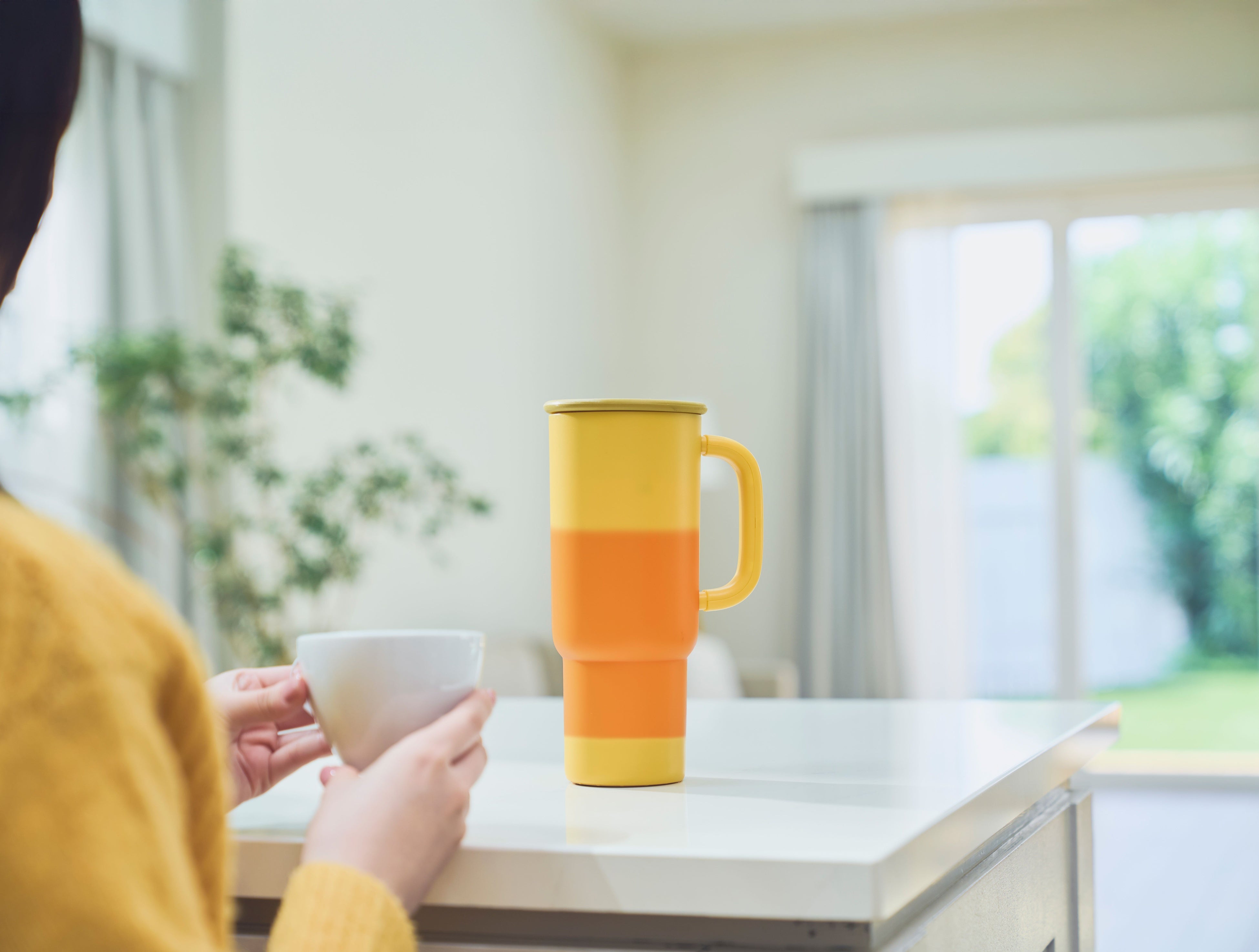 取っ手付きタンブラー型のデザインにより、持ち運びやすく、給水もスムーズに行えます。さらに、取っ手があることで満水時でも安定して運ぶことができ、安心してご使用いただけます。