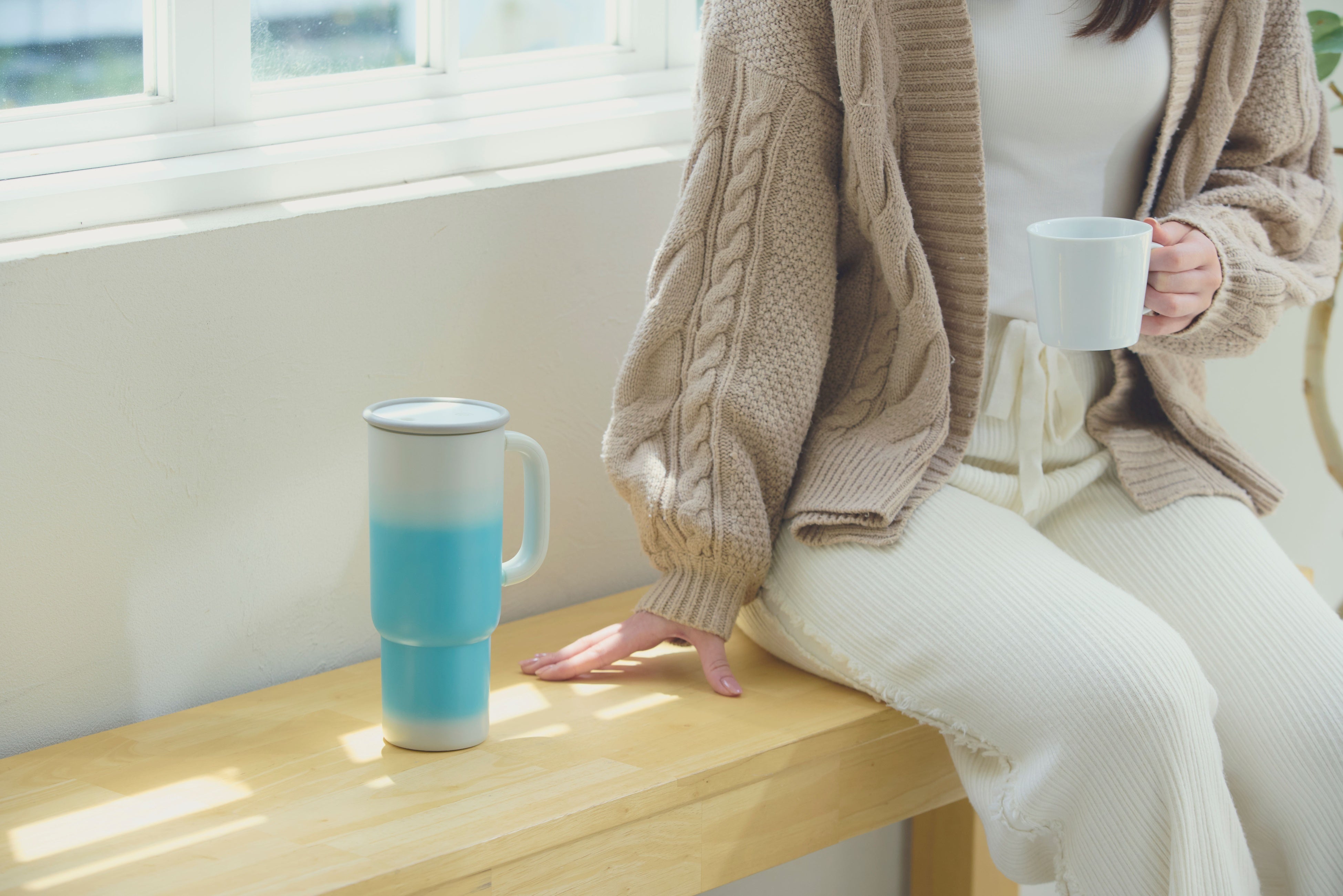 「寒さで気分が落ち込みがちな季節でも気分が上がるように」とカラフルなラインアップを取り揃えました。本体はアイボリー→ターコイズ、ピンク→ブルー、ネイビー→パープル、イエロー→オレンジへとそれぞれ変化する4色です。お好みのカラーを選んで、日常に彩りをプラスできます。
