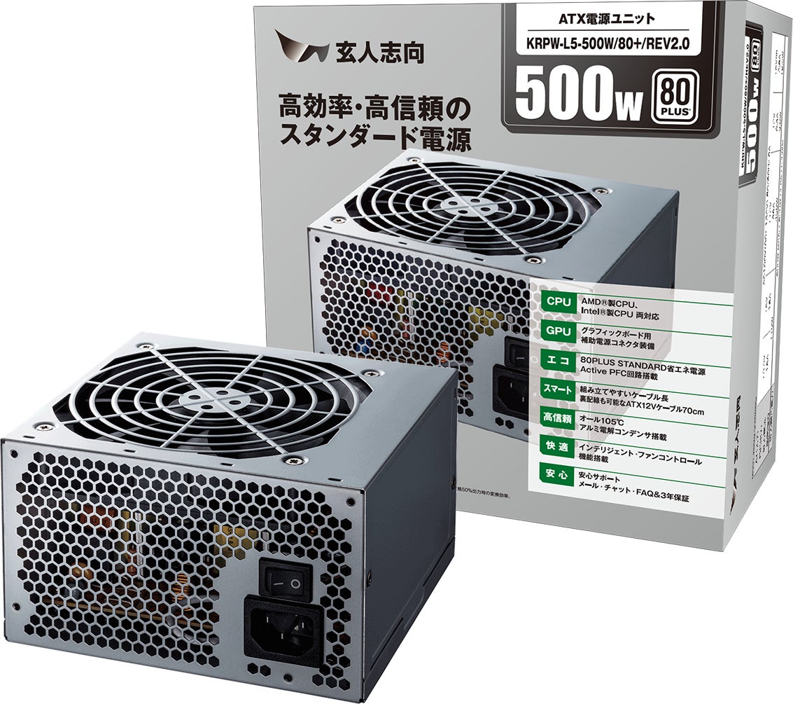 PCパーツブランド「玄人志向」は、80PLUS STANDARD認証のATX電源「KRPW-L5 REV2.0シリーズ」を発売いたします。