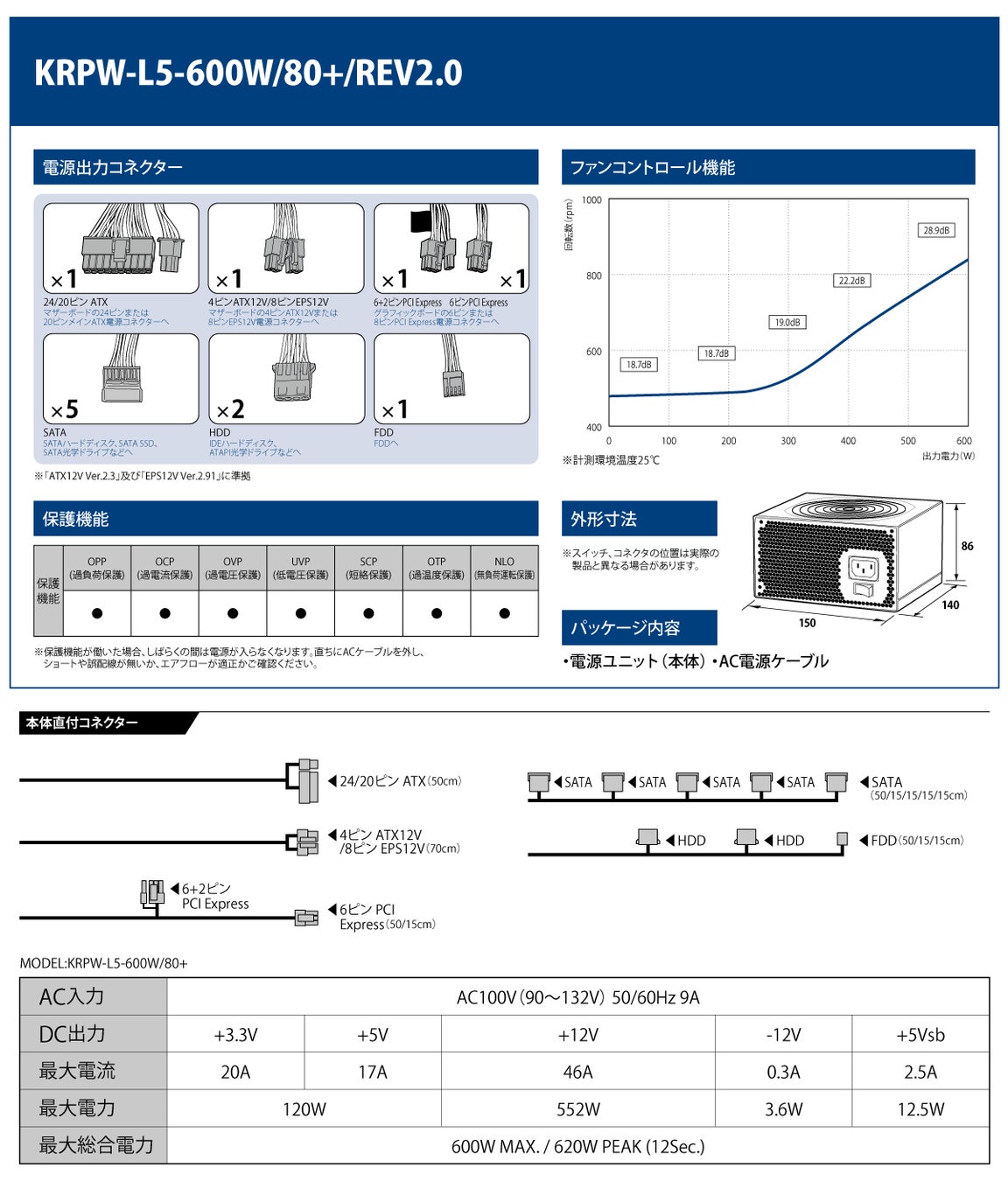 ■ KRPW-L5-600W/80+/REV2.0 (600Wモデル) / 80PLUS STANDARD ATX電源