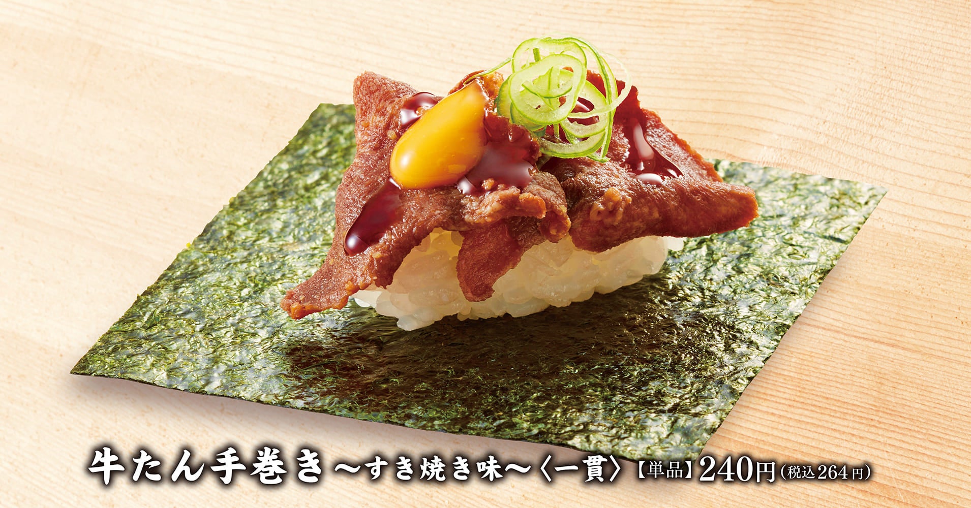 特製すき焼きだしでじっくり煮込んだ牛たんを海苔で巻いてお楽しみください。