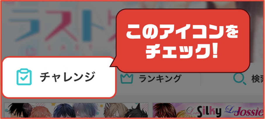 「マンガPark」アプリTOPのチャレンジアイコンをチェック!!