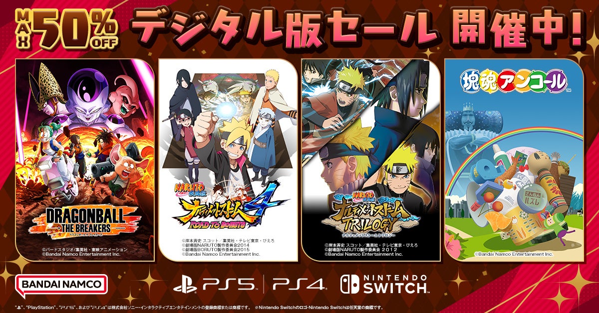 バンダイナムコエンターテインメント『デジタル版セール』開催中!「ドラゴンボール ザ ブレイカーズ」や「NARUTO-ナルト- 疾風伝 ナルティメットストーム4」などDL版ゲームが最大50%OFF!