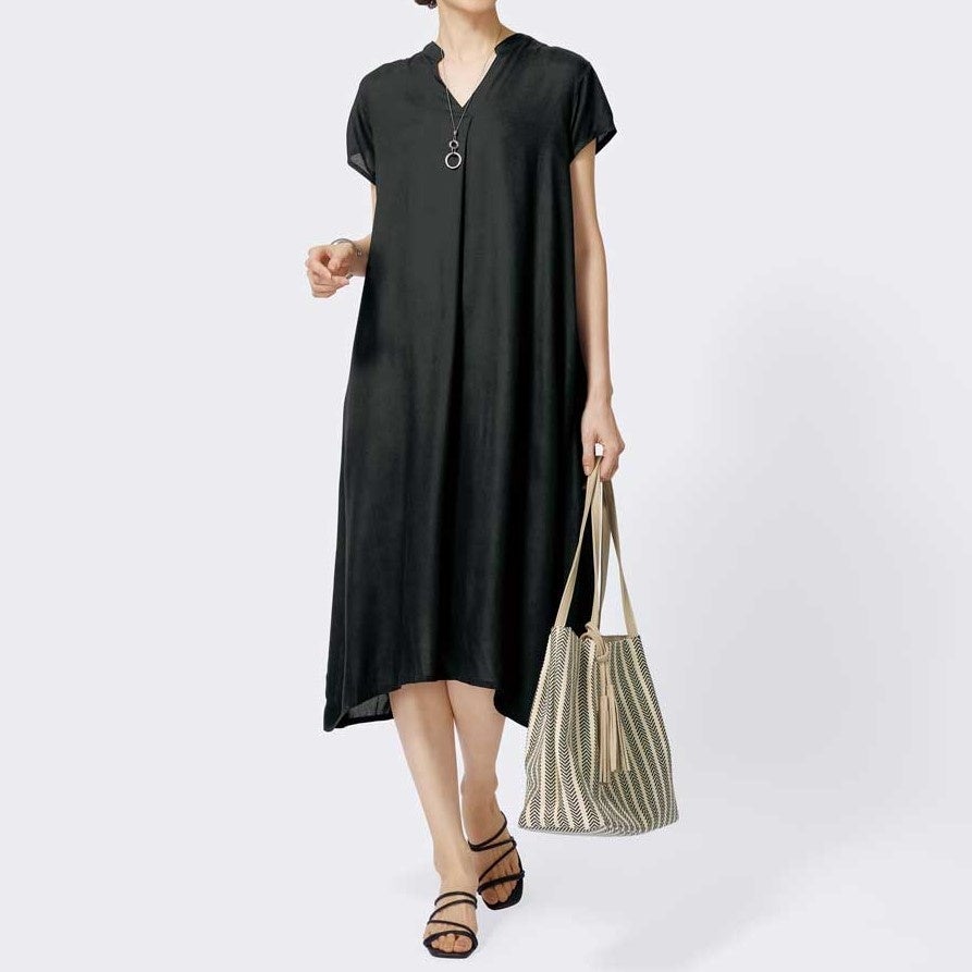 【商品名】ポケット付きレーヨンスキッパーワンピース