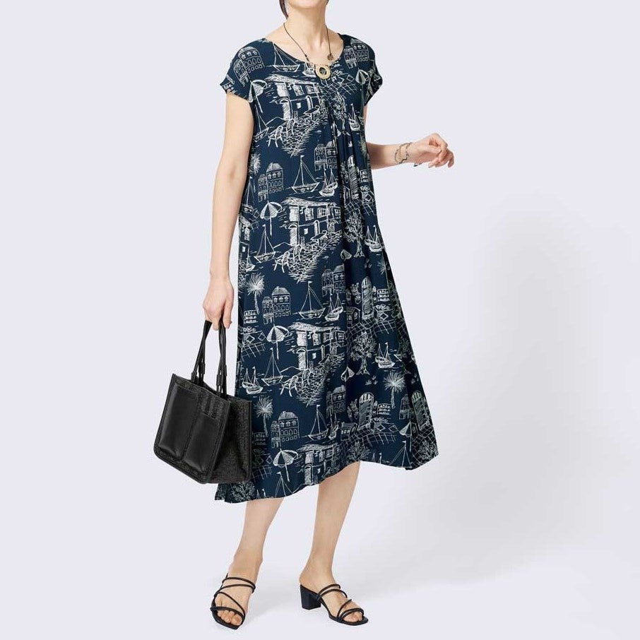【商品名】プリントレーヨンワンピース