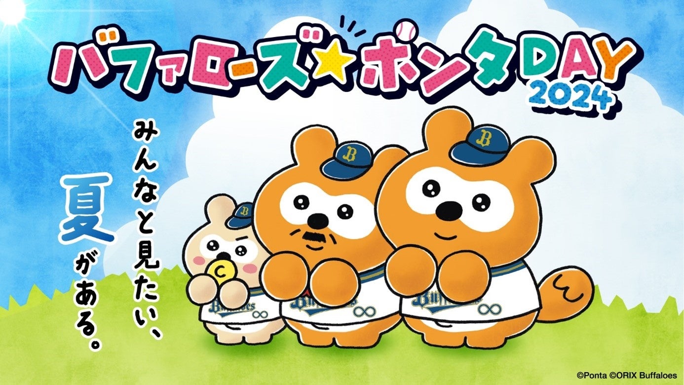 このたび、今年2回目の開催となる8月17日(土)のバファローズ☆ポンタDAY 2024のキービジュアルを公開しました。今回のキービジュアルには、「ファンの皆さんと過ごす、夏の思い出を作りたい」というバファローズ☆ポンタファミリーの思いが込められています。試合当日はキービジュアルを用いたグッズの販売や会場装飾を行い、ファンの皆様と応援を盛り上げます。