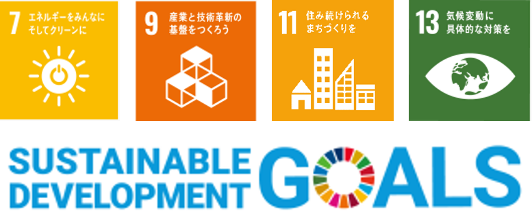 今回ご案内の取り組みは、SDGsの17のゴールのうち特に 7番、9番、11番、13番に貢献するものと考えています。