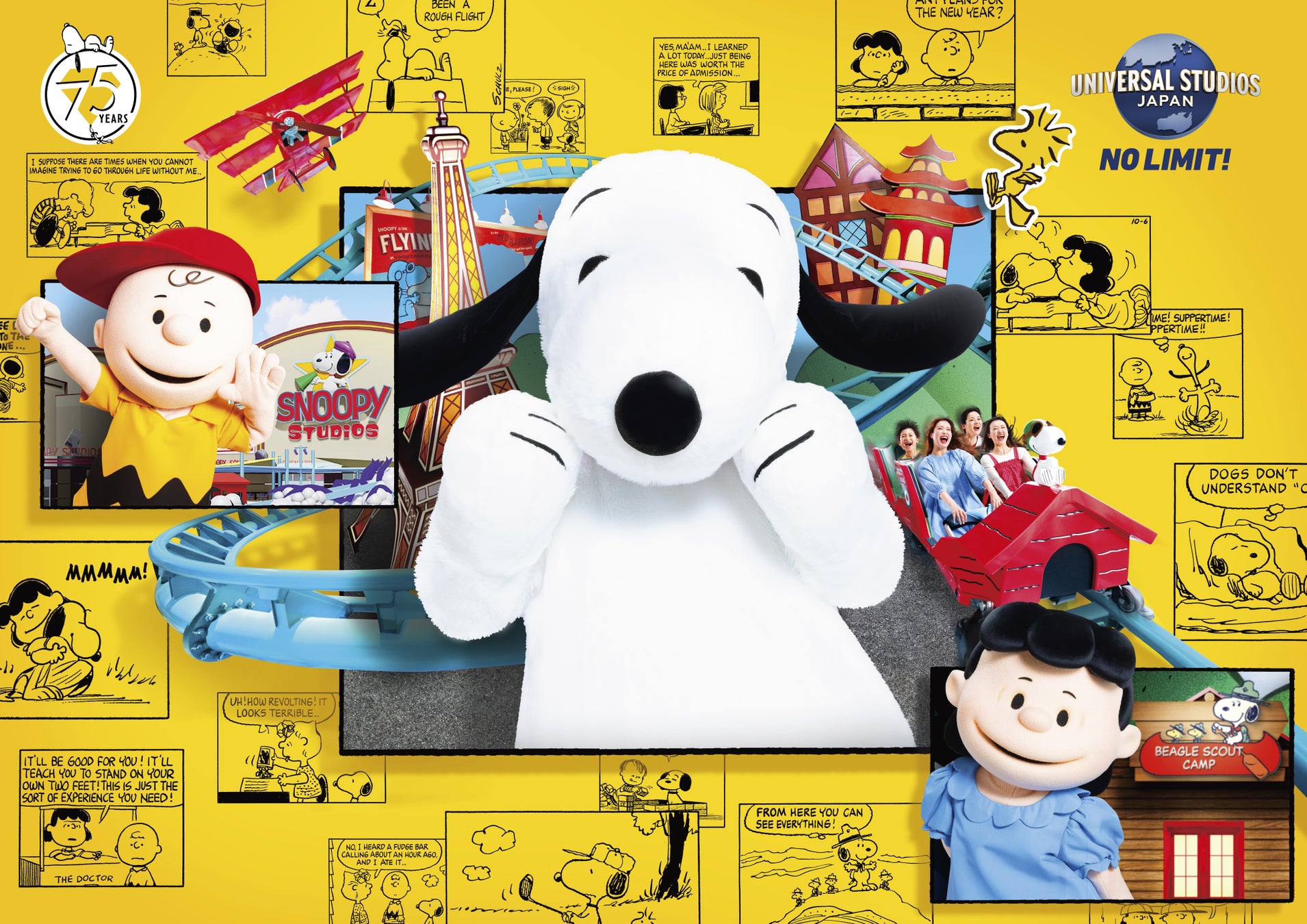 『PEANUTS』のコミックは75年前にアメリカの新聞7紙で連載されて以来、2,600紙で掲載、多言語に翻訳され、今もなお、国や世代を超えて愛され続けています。コミック誕生75周年となる記念すべき年に、ユニバーサル・スタジオ・ジャパンは、『スヌーピー・スタジオ』の魅力をパワーアップし、また、スヌーピーとその仲間たちの魅力が詰まったキャンペーン『超スヌーピー・フェスタ』も展開いたします。
