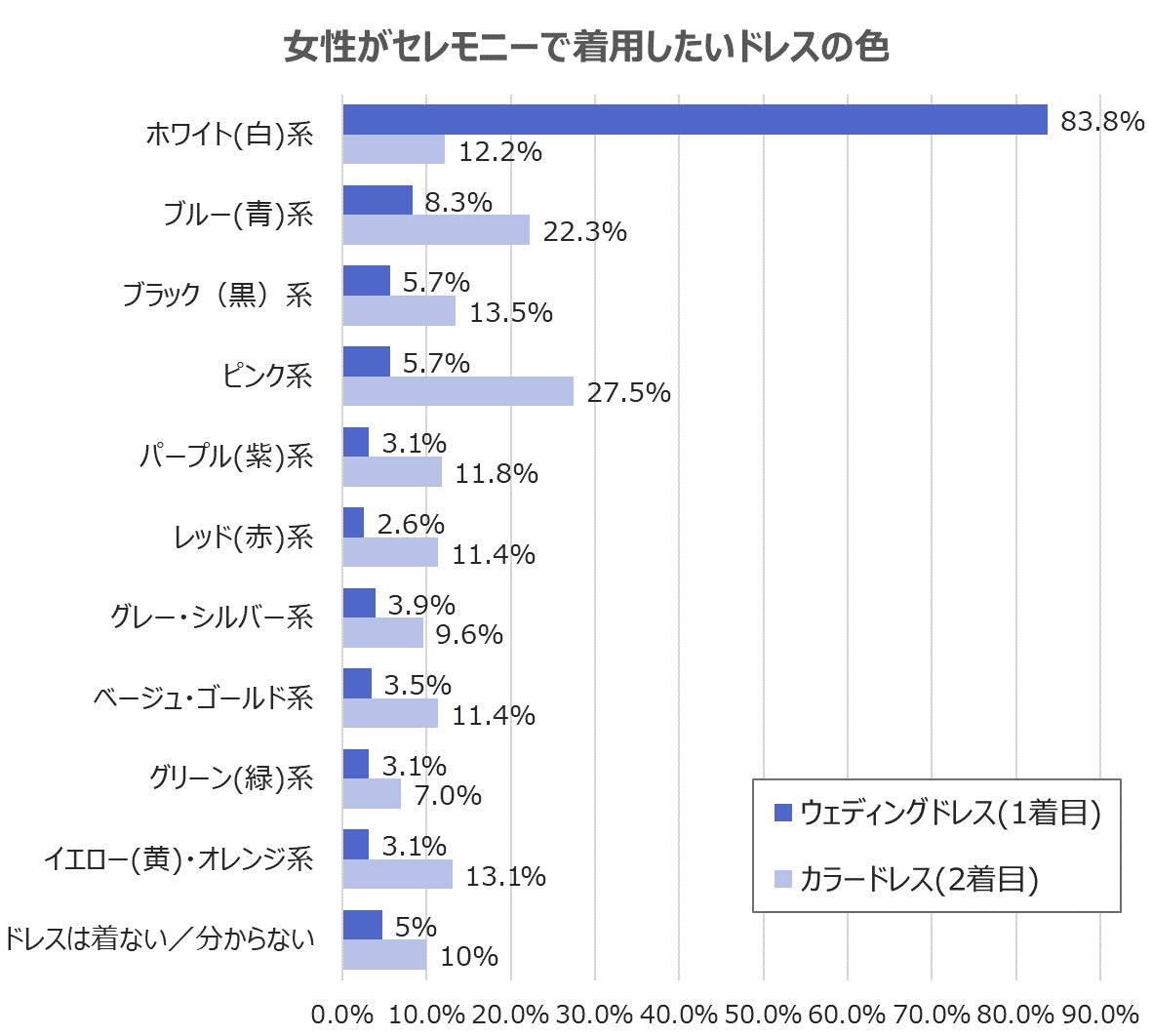 ・セレモニーで着たいウェディングドレス1位は「ホワイト(白)系」!3位にトレンドの「ブラック(黒)系」