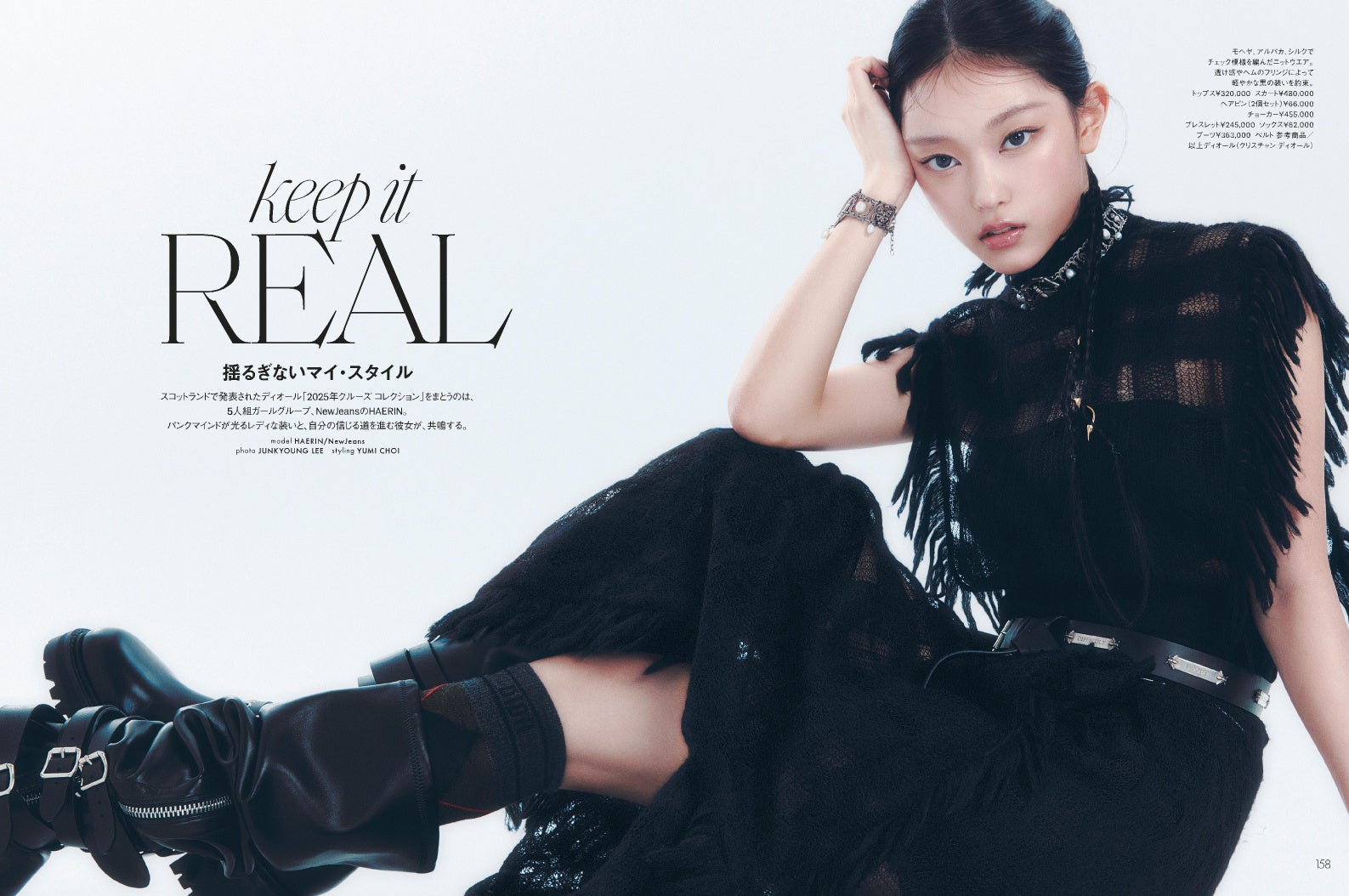 「ディオール」の上質なニットウェアにマリンモチーフが目を引くネックレスを合わせ、ホリデーシーズンにふさわしい華やかなスタイルで表紙を飾った、5人組ガールグループNewJeansのHAERIN。力強い眼差しで、今号のテーマ「私らしく、新時代へ!」を表現してくれました。