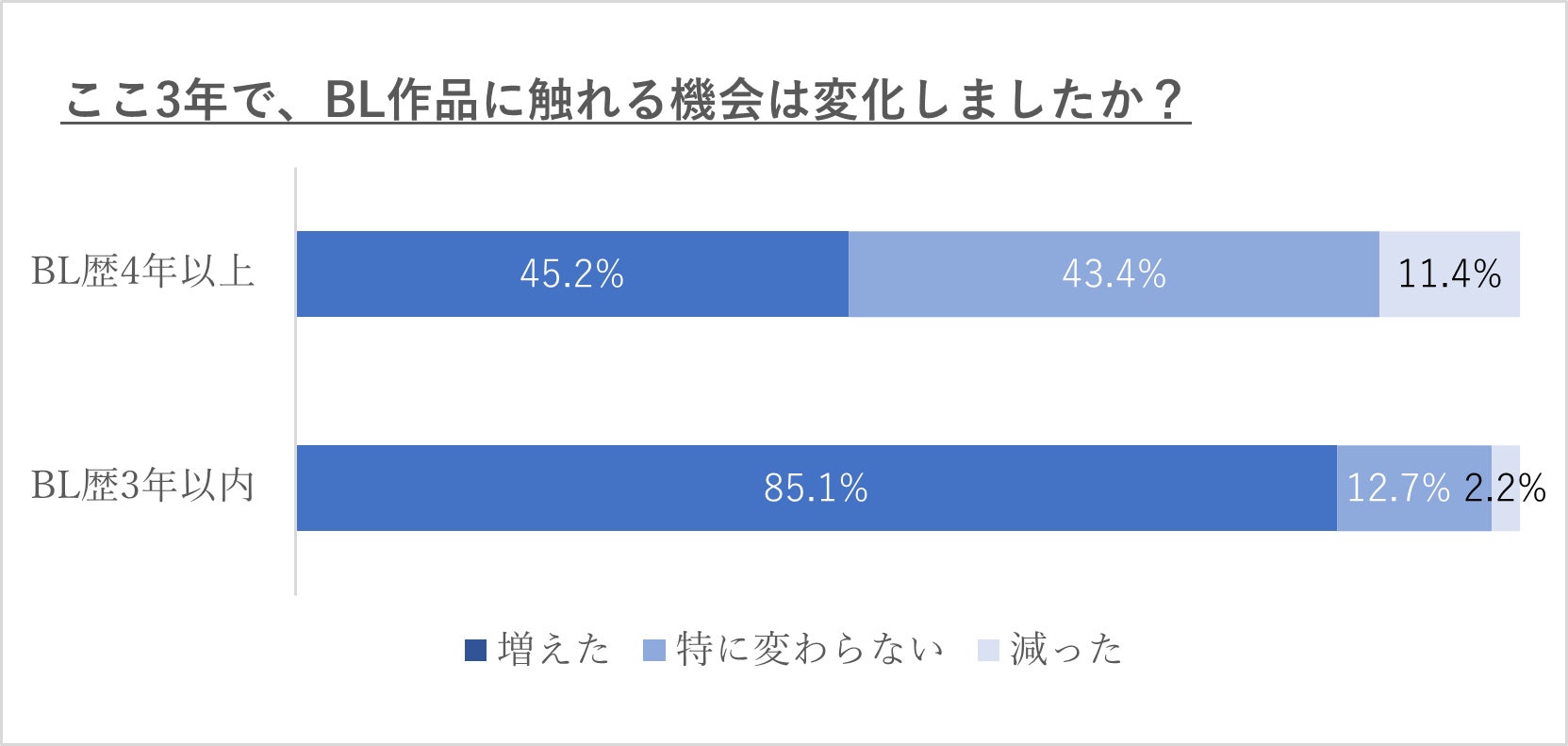 ② 45.2%がこの3年でBLと触れる機会が増えたと回答