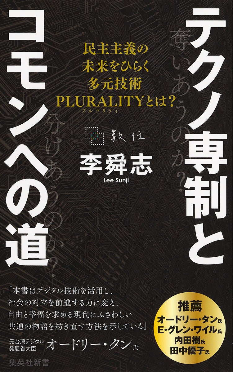 オードリー・タン氏推薦! 『テクノ専制とコモンへの道 民主主義の未来をひらく多元技術PLURALITYとは?』(李舜志・著)が6月17日(火)に集英社新書から発売。