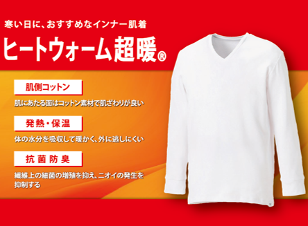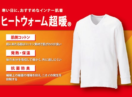 吸湿発熱インナーのお悩みを解決!肌に触れる部分を綿100%に改良した「ヒートウォーム超暖®肌着」を発売!!