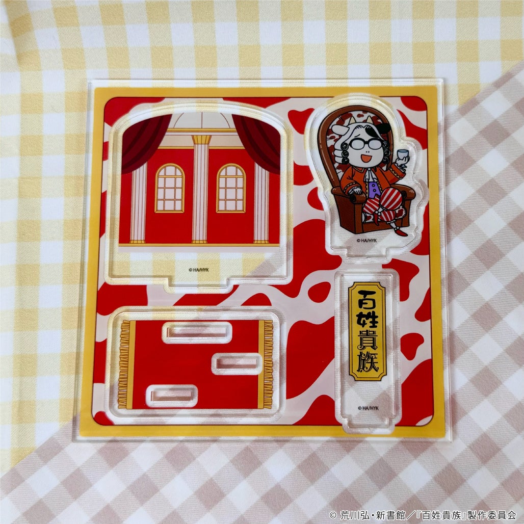 アクリルスタンドプレートは、どこにでも飾りやすい縦横最大12cmのスタンド型アイテムです。高貴さを感じる背景に、セレブ感漂う荒川先生という組み合わせは神々しい……!