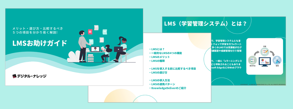 導入実績2000超を誇るeラーニング専門ソリューション企業、株式会社デジタル・ナレッジ(本社:東京都台東区、代表取締役社長:はが弘明)は、LMS(遠隔・学習管理システム)の基本情報からメリット、選び方、導入前に比較するべき5つの項目等をまとめた「LMSお助けガイド」を無料公開いたしました。