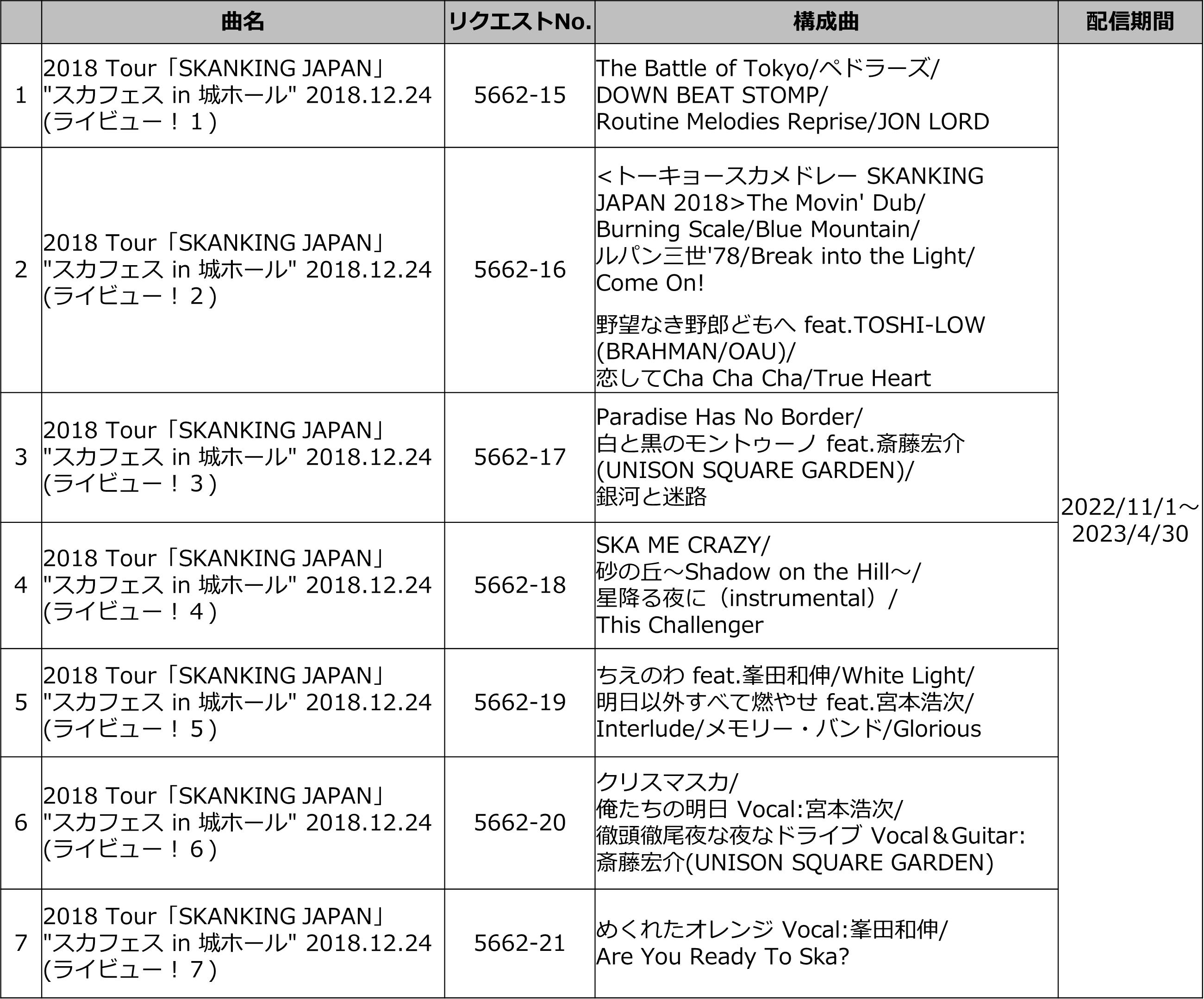 「ライビュー!」において、2018年のクリスマスイブに大阪城ホールで開催された、東京スカパラダイスオーケストラの全国ツアー『SKANKING JAPAN』ファイナル公演より、熱狂のライブ映像を11月1日より期間限定で独占配信します。