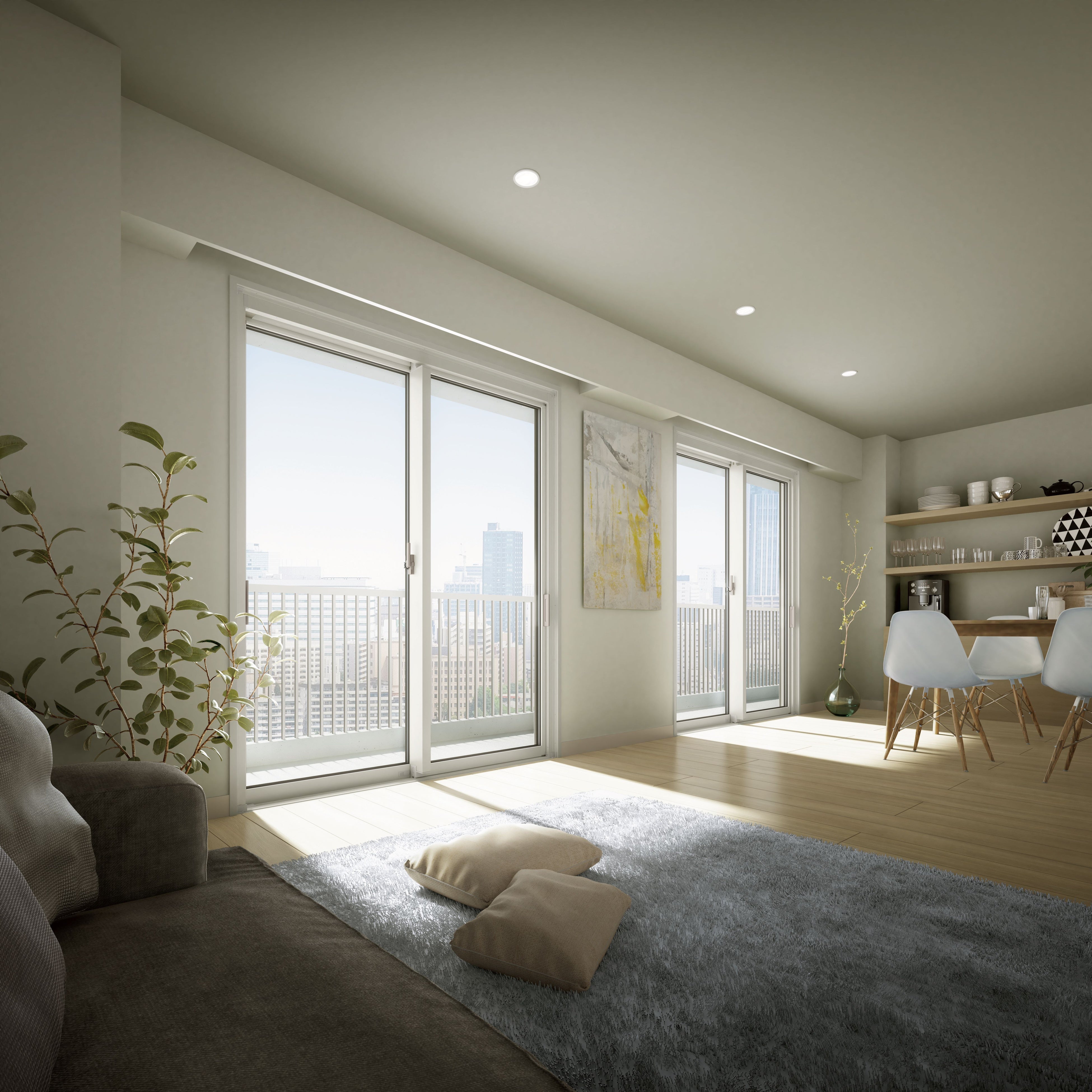 中高層マンションに設置可能な強度(耐風圧性S-6)を保ちつつ、今回のリニューアルで熱貫流率Uwを2.3[W/(m²・K)]以下から1.9[W/(㎡・K)]以下にして断熱性能をさらに向上しました。