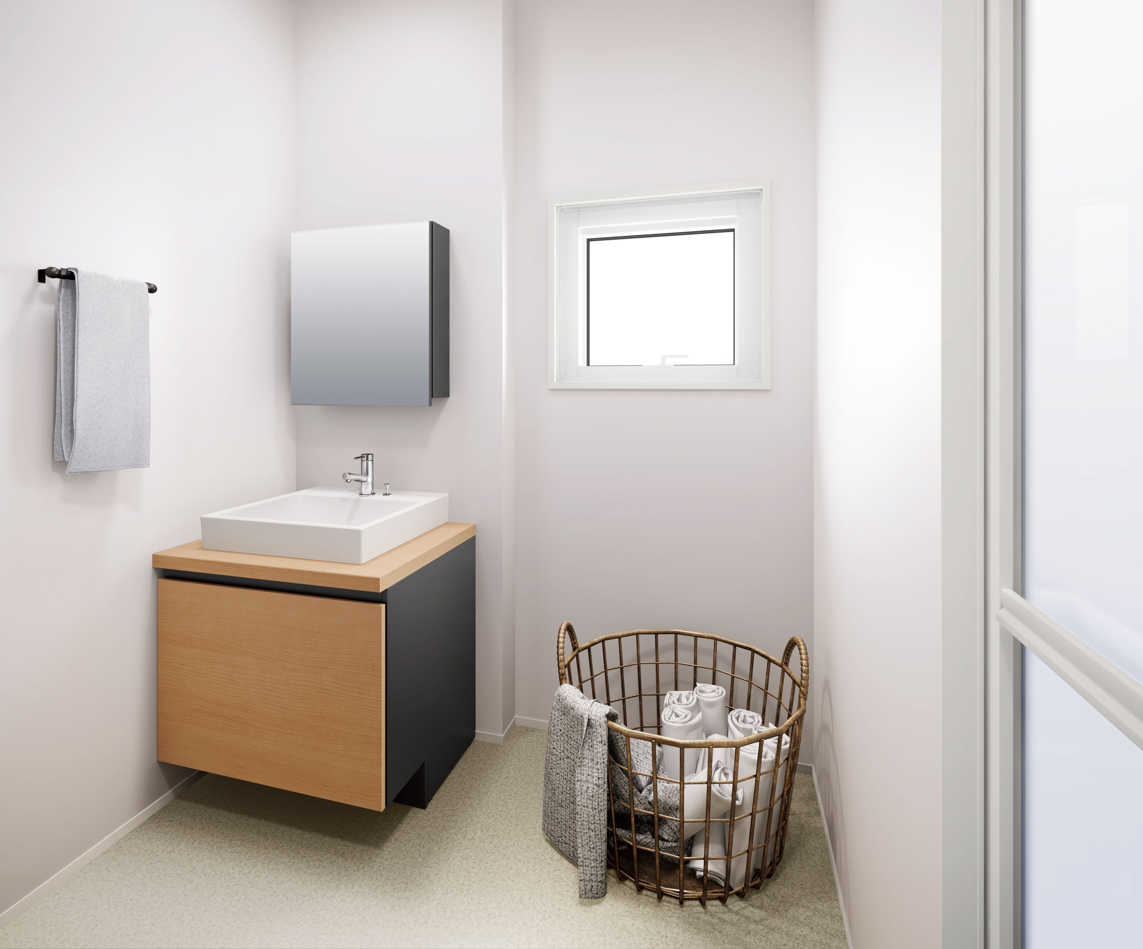 サッシサイズは最小(W300×H300)まで対応可能。洗面室などで換気用の小窓として使用いただけます。