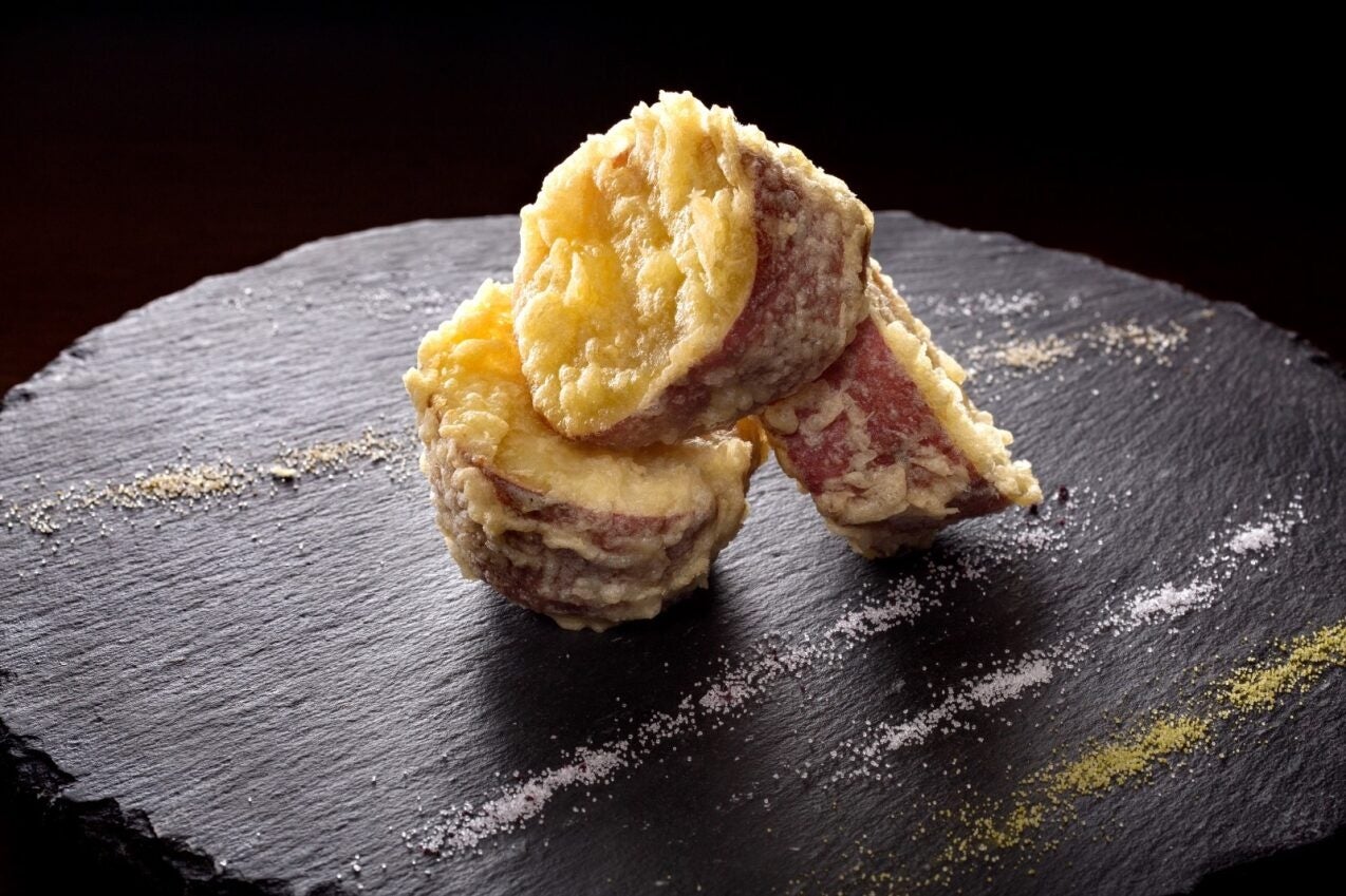 なると金時の揚げたて天婦羅、ふかし芋、大学芋、ソフトクリームなど金時芋メニューも豊富。